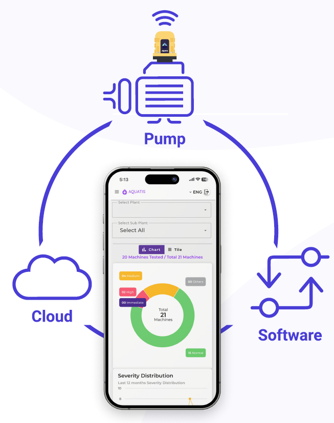 Aquatis combines wireless IoT sensors with secure cloud analytics to transform machine health data into prioritized alerts: